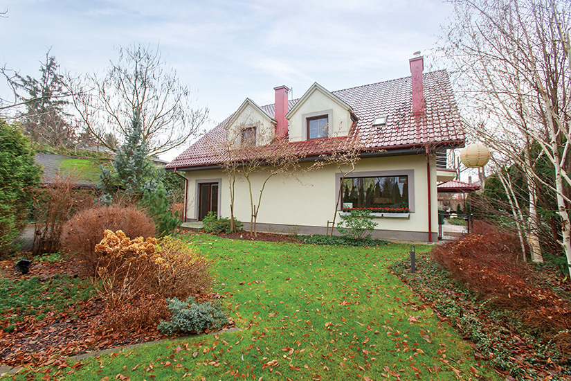 Na ogrodzonej działce znajduje się zagospodarowany ogród wraz z zadbaną i różnorodną roślinnością, a jego urok dodatkowo podkreśla oświetlenie, a dzięki zautomatyzowanemu systemowi nawadniania, pielęgnacja ogrodu nie wymaga zaangażowania.