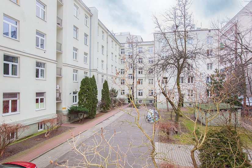 Mieszkanie znajduje się w przedwojennej kamienicy powstałej w 1931 roku, zrealizowanej w technologii tradycyjnej (cegła). Części wspólne budynku są zadbane, i wyremontowane (do tej pory przeprowadzono remont elewacji wraz z termoizolacją; wymieniono piony kanalizacyjne i okna; usunięto piecyki, a ogrzewanie i ciepła woda dostarczana jest z sieci miejskiej.