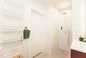 - Łazienka wyposażona w wannę oraz prysznic